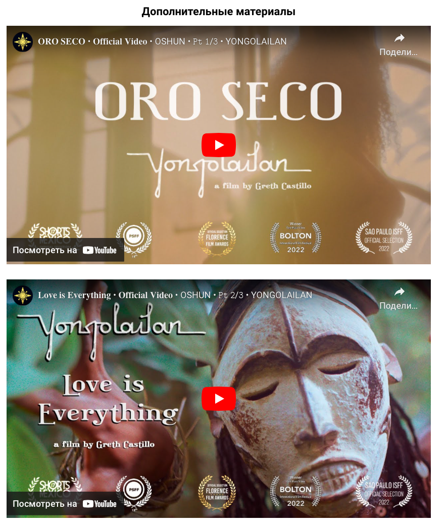 Вы прочувствуете состояние, посыл и энергию Ориш.