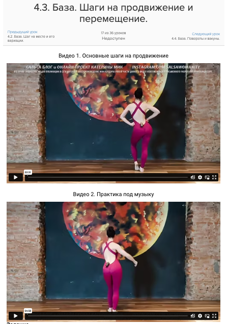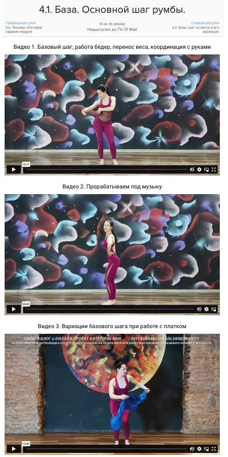 Курс по румбе у Катерины закончился почти два месяца назад, и я еще раз пересмотрела, пересмотрела уроки, информацию, обратную связь.