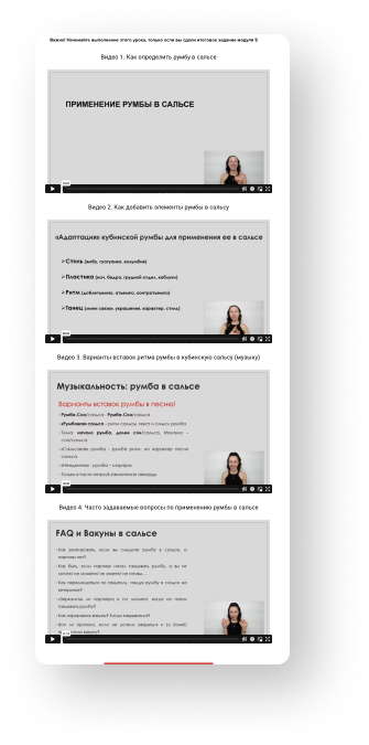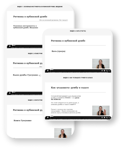 Курс построен так, что постепенно и бережно углубляет тебя в тему кубинской румбы - от музыкальности до применения в сальсе.